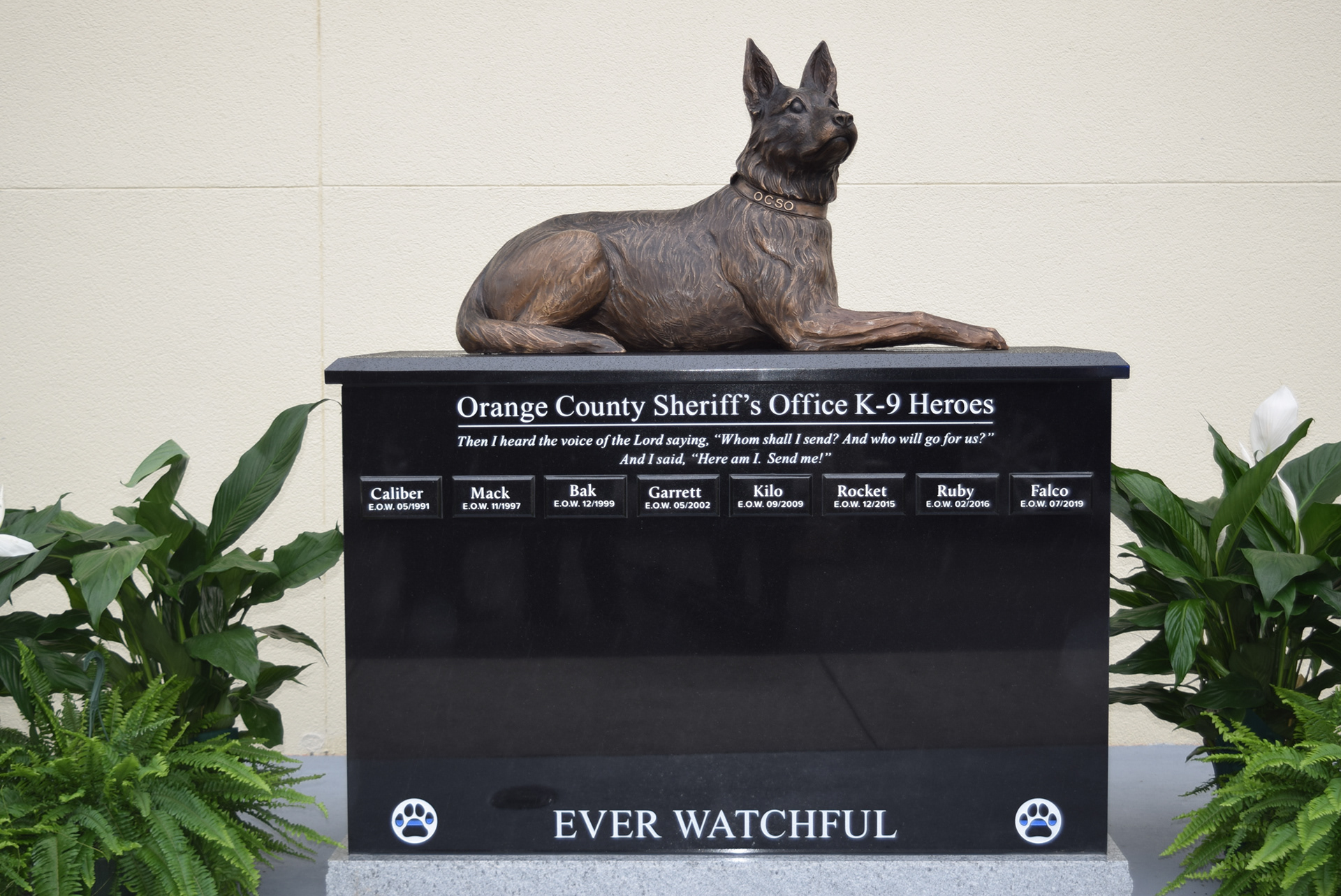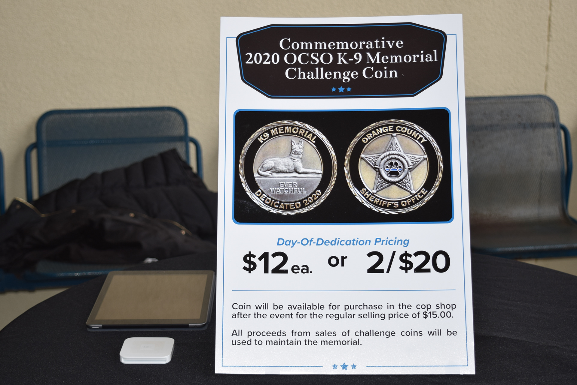 The Orange County Sheriff's Office wanted to honor their fallen K9 Heroes, and I worked with senior staff to make it a reality. I photographed the canine model and combined two separate photos to provide to the sculptor as a reference. I designed the layout of the plinth and plaques, and created the design for the coins, as well as the signage for the purchasable items (including photographing the items to display). This project gave me the perfect opportunity to showcase many of the skills I have developed over the years.